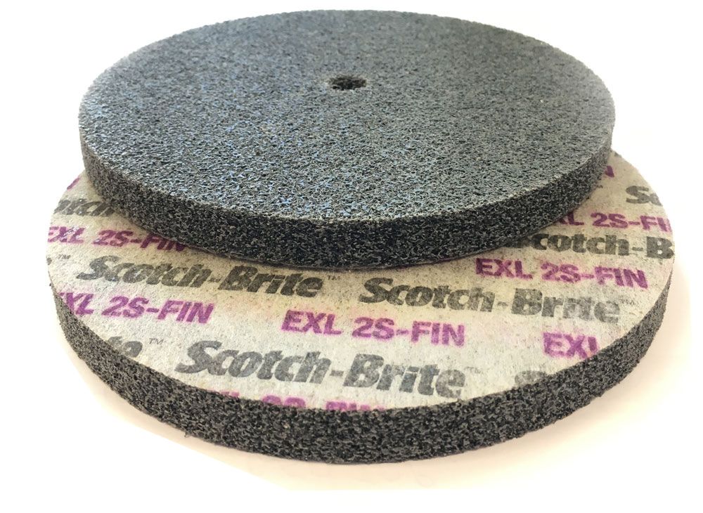 Круги Scotch-Brite XL-UW диаметром 150мм, из прессованного нетканого синтетического материала используются для зачистки сварных швов во внутренних углах деталей, понижения риски от предыдущей обработки, удаления царапин и следов фрезеровки и других доводочных операций. Зерна абразивного минерала, нанесенные на синтетическое волокно, шлифуют металл, а волокно подполировывает поверхность. Круги XL-UW удаляют даже довольно грубые дефекты, оставляя после себя поверхность достаточного для дальнейшей полировки до зеркала качества. Это значительно экономит время, а также значительно уменьшает количество шагов обработки, снижая затраты на абразивные материалы. Абразивное зерно распределено абсолютно равномерно по всему объему круга, что позволяет получать одинаковое качество обрабатываемой поверхности в течение всего срока службы круга. Круги XL-UW могут работать как торцом так и плоскостью (при толщине круга 6мм).
